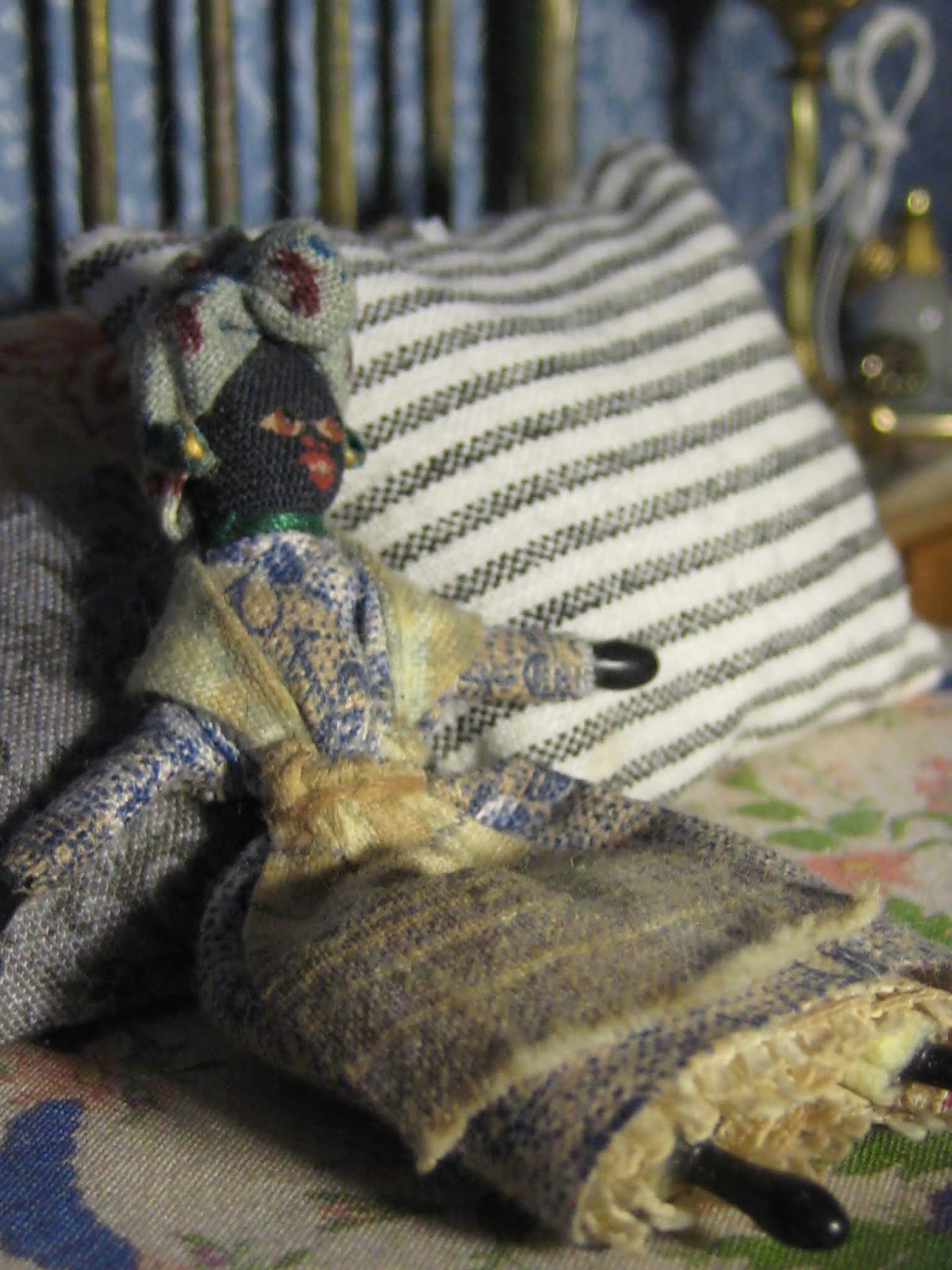 Hi Elizabeth, what an attractive room it has become! I think we all want to sleep here and be surrounded by the beautifull miniatures! (love the dolls) You have solved the obstacles (very recognizable!!) you have encountered very well! Take care and I like your posts; they are always fun to read! Monique