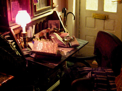 Elizabeth! The room is simply extraordinary and such a pleasure to comb through! You have this singular talent for taking an already sensational space and transforming it into something even more meaningful to relate the inhabitant's story. Every viewer not only wants to live here, they want to be the Dowager and posses her rich and meaningful memories! Your ability to transform perfectly lovely miniature items into superstars is inspirational and makes me seek a deeper connection with my own creativity. There is goodness in a simmering rethinking of an already "completed" dollhouse room, because you have shown that trusting yourself can lead to Greatness! I especially love your imagination in using untraditional pieces to bolster the telling of the tale. The sleeping puppies are heartwarming and hilarious! You are talented, brave, funny, and such an inspiration to so many miniaturists! Thank you so much for sharing your talents, ideas and methods with us!